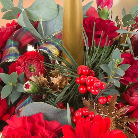 This long lasting arrangement will be a beautiful addition to the home throughout the festive season.